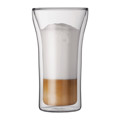 The Assam double wall glasses can be used the whole year round. You can use them for your cold drinks in summer and hot drinks in winter. They are made of a very strong but yet light weight glass (borosilicate glass). They can safely go in the dishwasher and microwave. No coaster needed. Bodum's insulated glassware is made from durable borosilicate glass. Borosilicate glass is a strong heat-resistant glass that weighs less than traditional glassware. Used to make scientific lab glass, borosilicate glass (medical grade glass) is stronger than traditional "soda-lime" glass and can be used for everything from drinkware to cookware. It substitutes boron oxide in place of the soda and lime used in traditional glassware. The boron oxide acts as a glue holding the silicate together and due to the small size of boron particles, the glass is held together tighter, resulting in a stronger glass. Some customers may perceive the glass to be "thin" as they hold it. It is important to explain the difference between borosilicate and soda lime glass. Borosilicate glass doesn't need to be as thick as traditional glass to be just as strong. It is simply a different type of glass that is resistant to temperature swings and scratching. Because the particles are held together so tightly, borosilicate glass is dishwasher safe and will not become cloudy over time; you can rest assured that after 100 cycles, the glass will be as clear as the day you bought it. Simply treat it as you would any glass product and it will stand up to every day use. Dishwasher and microwave safe.