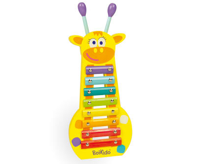 Develop rhythm and melody while playing with the Giraffe xylophone. 2 drumsticks included.