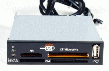 <b>Features:</b> - For installation in 3,5” drive bay. - Supports:MMC/SD/MS/MS Pro/MS Duo/SM/CF/MD. - LED's for Power and Activity status. - CE/FCC standards.