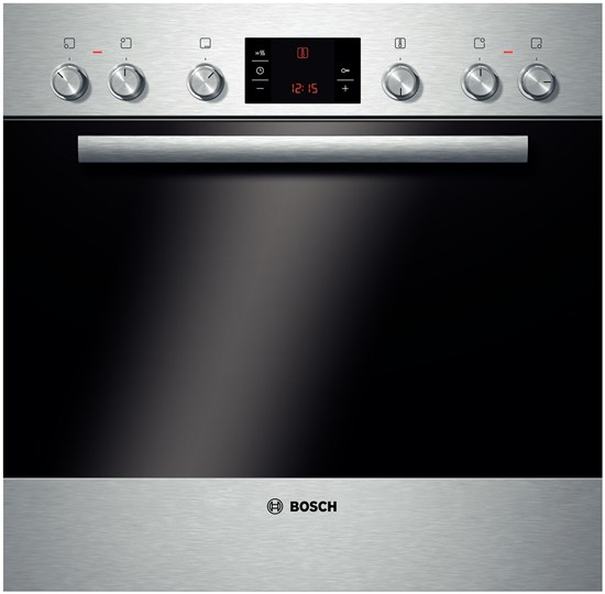 Bosch HND1065. Hob type: Induction hob, Top surface type: Glass-ceramic. Oven type: Electric oven, Integrated clock: Electronic, Timer type: Digital