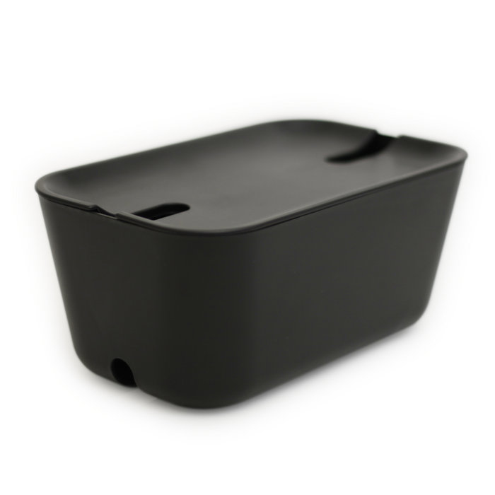 Hideaway is designed with carefully considered details like a lowered anti-slip lid where all items lie safely and which provides a delicate storage place. Hideaway has feet made of silicone for stability and to prevent scratches on floors, shelves or tables. The bottom of the drawer has ventilation holes and the material is fireproof. The lid is designed with a click function to keep cords, chargers etc. in place. With its simple and pure design, it is decorative and easy to reach.