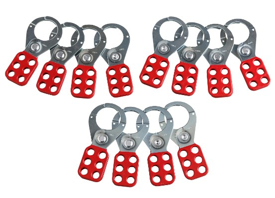 Our lockout hasps are the answer to your safety concerns during group lockout situations. Hasps are constructed of vinyl-coated high tensile steel and are plated to resist rust. Lock holes are 3/8" diameter to accommodate most standard lock shackles.