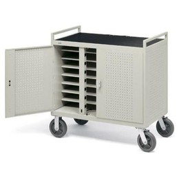 Our 24-Unit Laptop Carts store and charge up to twenty-four laptop computers. Two 14-outlet surge and overload-protected electrical units are mounted in the front or rear of the cart. All carts have been certified to conform with UL 60950 standards for Safety of Informational Technology.