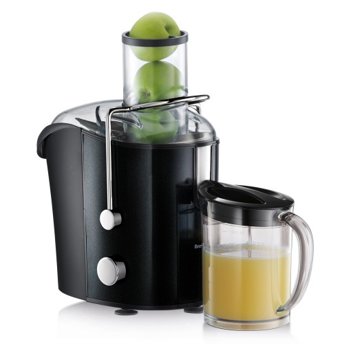 1000w motored fruit juice has a choice of 2 speeds, and its XXL 85mm feeding tube which takes whole apples, carrots, tomatoes and peeled oranges to make juicing fruit & vegetables fast and easy.