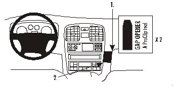 2. Hold the angled edge of the right part of the ProClip in the gap, in the same time pull the left part of the ProClip leftwards, towards the steering wheel.