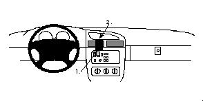 1. Press the curved edge on the lower part of the ProClip into the gap between the stereo and the surrounding panel frame at pos. 1.