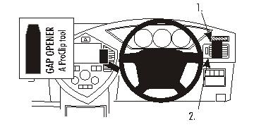 The ProClip is a mounting bracket for the vehicles dashboard. Onto the Proclip you can install e.g. a holder for your mobile phone or PDA or a handsfree set etc. Safe and convenient -always within easy reach. The ProClip is car specific and easy to install. The installation is quick, no special tools or dismantle of the dashboard is required and it will not damage the interior of the vehicle. Made in black ABS plastic. Comes with detailed instructions. Right mount Please read all of the instructions and look at the pictures before attaching the ProClip.