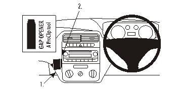 The ProClip is a mounting bracket for the vehicle’s dashboard. Onto the ProClip you can install e.g. a holder for your mobile phone or PDA or a handsfree set etc. Safe and convenient -always within easy reach. The ProClip is car specific and easy to install. The installation is quick, no special tools or dismantle of the dashboard is required and it will not damage the interior of the vehicle. Made in black ABS plastic. Comes with detailed instructions. Angled mount Please read all of the instructions and look at the pictures before attaching the ProClip.