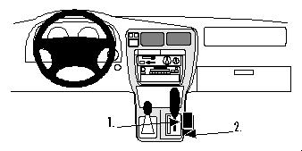 The ProClip is a mounting bracket for the vehicle’s dashboard. Onto the Proclip you can install e.g. a holder for your mobile phone or PDA or a handsfree set etc. Safe and convenient -always within easy reach. The ProClip is car specific and easy to install. The installation is quick, no special tools or dismantle of the dashboard is required and it will not damage the interior of the vehicle. Made in black ABS plastic. Comes with detailed instructions. Console mount 1. Clean the surface on top of the console frame at pos.1. with the enclosed alcohol pad and peal off the cover of the adhesive tape on the Proclip.