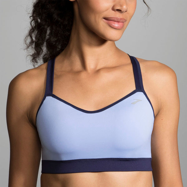This streamlined, masterfully-designed sports bra has lightweight, perforated cups that provide maximum shape, ventilation, and modesty in a style built specifically for A/B cups. Cross-back, powermesh straps will keep you cool, while the DriLayer Adapt bottom band in this Brooks sports bra wicks moisture and molds to your body for a perfect fit.