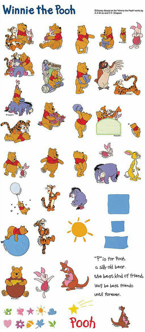 Here's Winnie on the go in the company of all his friends from the Hundred Acre Wood. Share the adventure and excitement as you join them on their travels. Our Disney Memory Card Collection features more of your beloved Disney characters and each card is compatible with all Brother labeled Disney Home Collection Embroidery Machines.