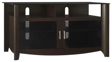 - Top open bay has room for components or a sound bar