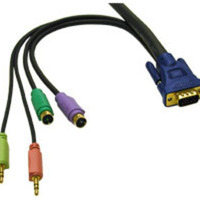 Cables To Go's Ultima 5-in-1 KVM cables are universally designed to work with KVM switches from many leading manufacturers. These cables feature separate keyboard, monitor, mouse, speaker, and microphone connectors combined into one cable with breakouts at each end. The 5-in-1 design, plus color-coded connectors, makes this cable easy to manage. The VGA cable is built from premium coaxial cabling ensuring superior resolution while eliminating ghosting and fuzzy images.