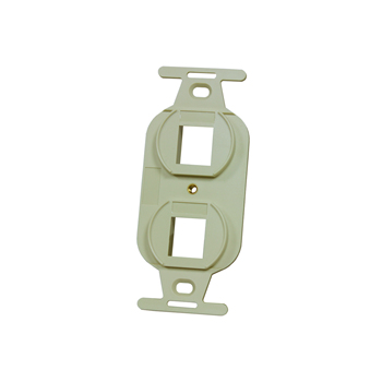 Keystone 106-Type Plastic Duplex Frame accepts two rear-loading keystone modules. It is compatible with many cable delivery systems that can house electrical duplex outlets.