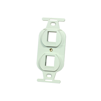 Keystone 106-Type Plastic Duplex Frame accepts two rear-loading keystone modules. It is compatible with many cable delivery systems that can house electrical duplex outlets.