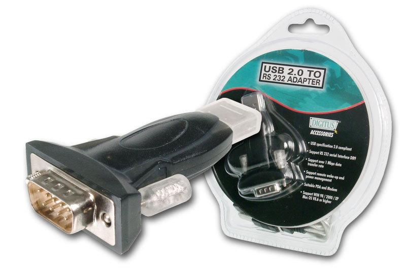 USB 2.0 to serial Converter, DSUB 9M including USB A Cable 80cm USB A M / USB A F black Design with LED
