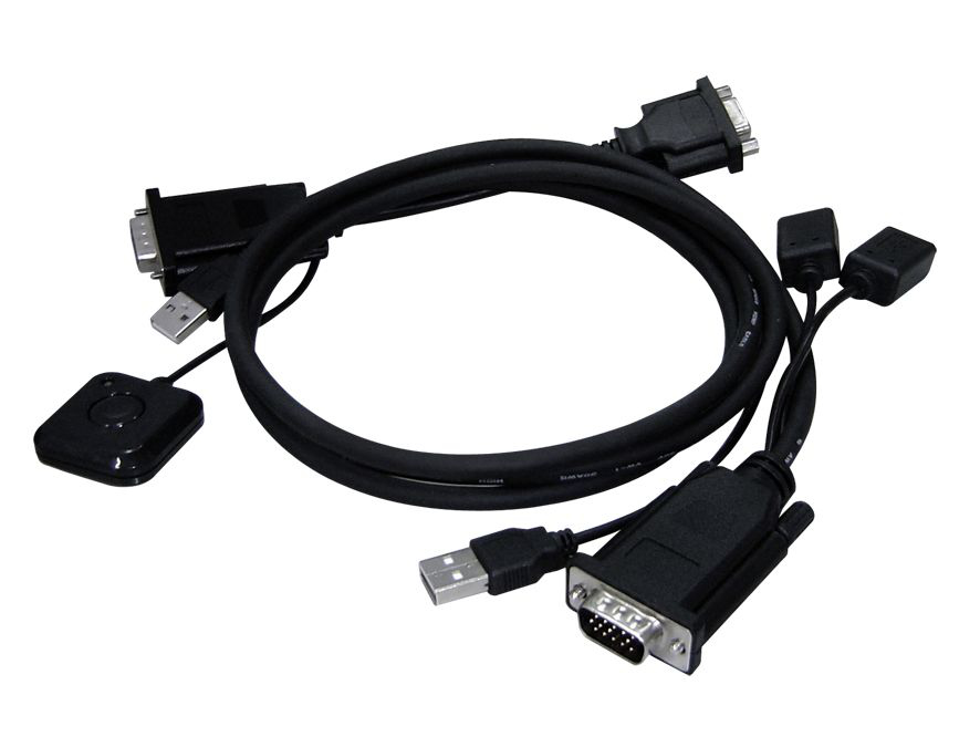 The micro KVM switch allows a user to control two computers via one keyboard, mouse and monitor. The KVM switch is cost effective by reducing hardware needs and increasing space.