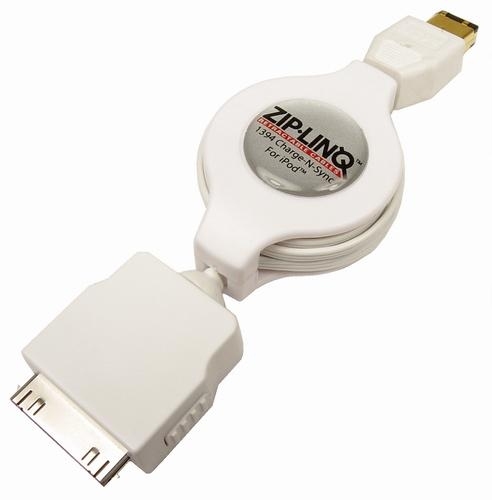 ZipLinq®'s uniquely designed retractable iPod Firewire DataSync and charging cable is a must for mobile PC users that require one of the most advance space saving technologies available. This compact cable allows you to easily sync your data, download contacts and much more. All without carrying your bulky cradle. The perfect Ipod Cradle Substitute for mobile users on the go!