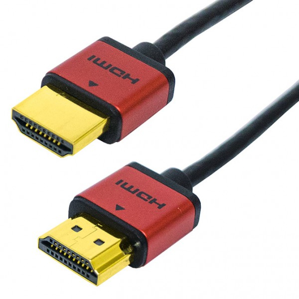HDMI Type A Male Plug to HDMI Type A Male Plug High Speed Ultra Slim Cable, 2 m. Long. HDMI Ethernet Channel, Audio Return Channel, Supports High Resolution 3D TV Over HDMI. Supports 4K x 2K Resolution. Supports Expanded Color Space. Gold plated 19 pin. 36AWG, O.D 3.6MM, 6.5 Ft. Long.