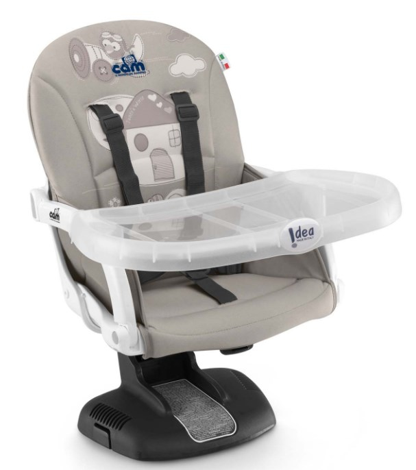 Universal fixing system on the chair with adjustable harnesses, 7 heights (5-20 cm), removable and washable wide tray, anatomic seat with soft removable and washable fabric padding, 5-point harness, base with non-slip rubber stoppers. It follows your baby’s growth: ideal both as a portable seat with tray for younger ones and as a booster seat without tray for older children who want to sit at a table with their parents. Very easy to clean with a sponge, removable and washable cover at 30°C. Ultra compact folding. Gift idea with gift cartoon.