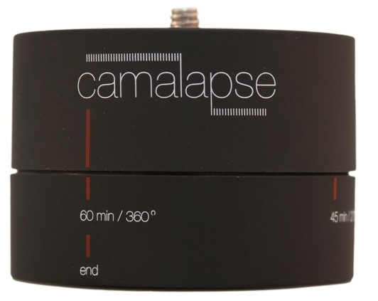The camalapse 3 can help create panning time-lapse videos or steady panoramic images with ultra compact digital cameras and smart phones. Capture up to 360°/60 min of pictures or video with the camalapse 3. Get cool B-roll footage by setting up your GoPro, Drift, Contour, smart phone or other ultra-compact digital cameras on the camalapse 3, and capture up to 360-degrees of footage over an hour of time (camalapse 3 pans counterclockwise).