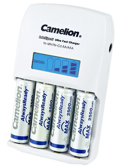 4 x AA/AAA, LCD, Ni-MH/Ni-Cd, AC/Car Plug, White/Silver