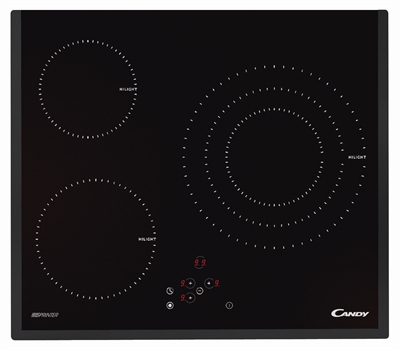 Candy PVD 633/1 N. Case design: Built-in, Hob type: Ceramic, Top surface type: Ceramic. Control type: Sensor. Power: 5700 W. Width: 597 mm, Depth: 512 mm, Height: 50 mm