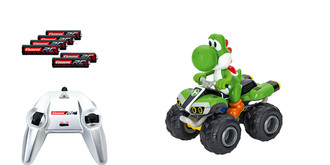The steering and driving functions are extremely precise and react to every single finger movement. Yoshi is powered by 6 batteries that ensure immediate action and fun. Everyone who goes for this RC Off-Road Kart is sure of one thing: Fun! Yoshi is seated and ready for action in his Carrera RC Nintendo Mario Kart(TM) 8.