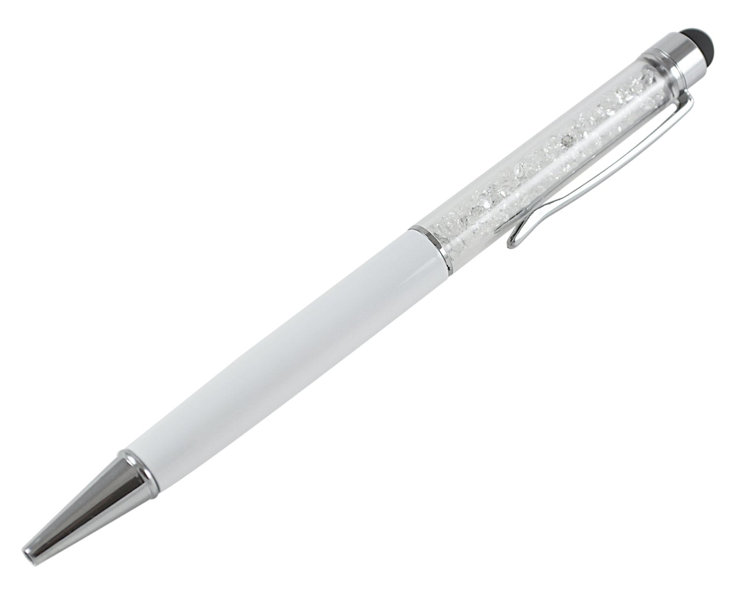 Universal Crystal 2-in-1 Retractable Rollerball Pen and Touchscreen Stylus for Capacitive Devices, White