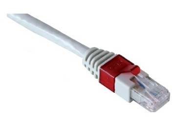 CAT 6 CCS RJ45-RJ45 unshielded patch cord, with white cable and interchangeable colored clips.