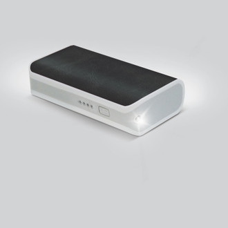 Power bank with black pu leather coating with universal USB port. Output 5V/1A, total capacity 4000mAh. Equipped with a USB charging cable-microusb, which allows the battery charging via PC, notebook or USB charger with maximum output of 5V/1A. it has 4 led to see remaining power and an emergengy light with on/off button.