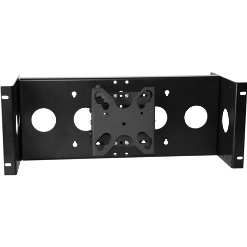 Tilting rack monitor mount allows you to work on rack mounted computers right at the rack. Monitor tilts for optimum viewing. Accommodates monitors up to 17" wide.