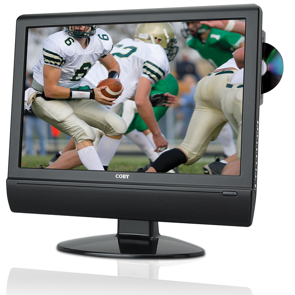 Crystal-clear HD picture meets complete digital entertainment,, with Coby's 15" LCD TV/DVD player. The TFDVD1574 incorporates the best features for television and movie viewing in a single system, with dual tuners for great reception of standard and digital television broadcasts, integrated side-loading DVD player, and USB/SD card slots for direct playback of your digital files. Full-range stereo speakers provide crisp highs and deep bass. AV and VGA connections, digital noise filter and multifunction on-screen controls also included.