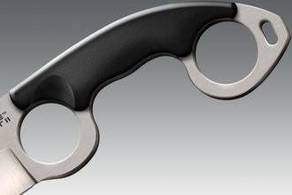 Cold Steel's new Double Agent® neck knives possess a significant set of advantages worth noting. Designed by Zach Whitson, with either a Karambit or Clip Point blade style, they're thin, flat, and super light (a little over 3 ounces including sheath). This makes them easy to conceal and very comfortable to wear. Their most audacious and notable feature, however, is their double ring handle design. Slip an index finger through the front ring nearest the blade and your pinky finger through the rear ring and close your fist to obtain a forward grip and vice versa for a reverse grip.