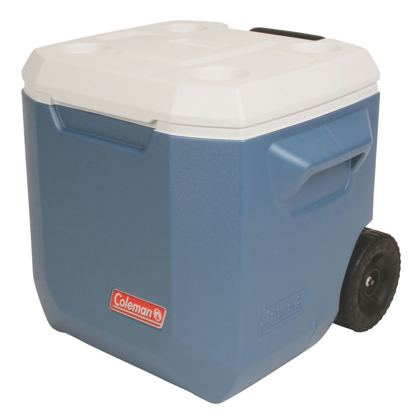 Keep your food and drinks cold for an extended time, and make the fun last longer, when you roll in with a Coleman® 40 Quart Xtreme® 4 Wheeled Cooler. Xtreme® technology uses an insulated lid and extra insulation in the walls to keep your items cold for up to 4 days. Large enough to hold 60 cans, you'll have plenty of space for refreshments for a whole group of people. Whether you're headed on a long weekend camping trip, a roadtrip, or across the ball field, the heavy-duty wheels and long, telescoping handle let you roll over almost any terrain with hardly any effort. The additional molded handles make it easy to lift your cooler in and out of the car or onto a picnic bench. Once you arrive, the Have-A-Seat™ lid will ensure you always have a place to sit and relax, and the cup holders molded into the lid will keep your cold drink close while you enjoy the day. When the fun is done, the EZ-Clean top wipes clean, and the leak-resistant drain makes it easy to empty any excess water, so you're ready for your next fun adventure.