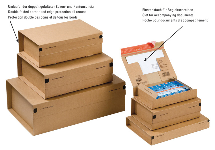 - All around double folded and glued edge and corner protection makes the boxes extremely sturdy and suitable for stacking
