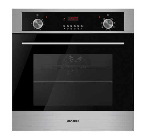 Concept ETV-4560. Oven type: Electric oven, Total oven(s) interior capacity: 56 L, Total oven power: 2900 W. Colour of product: Black, Stainless steel, Control type: Buttons, Rotary, Display type: LED. Timer type: Digital. Energy efficiency class: A, AC input voltage: 220-240 V, AC input frequency: 50 Hz. Width: 595 mm, Depth: 575 mm, Height: 595 mm