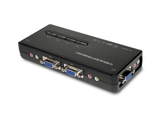 Save space on your desktop with only one monitor, keyboard and mouse. With this 4 ports PS2 KVM switch allows you to share one monitor, keyboard and mouse set on two different computers. It is even possible to share one microphone and/or and speaker set. The KVM switch comes complete with all cables Switching to the other computer can be done in 2 different ways: -Hotkey on your keyboard -Buttons on the KVM switch.