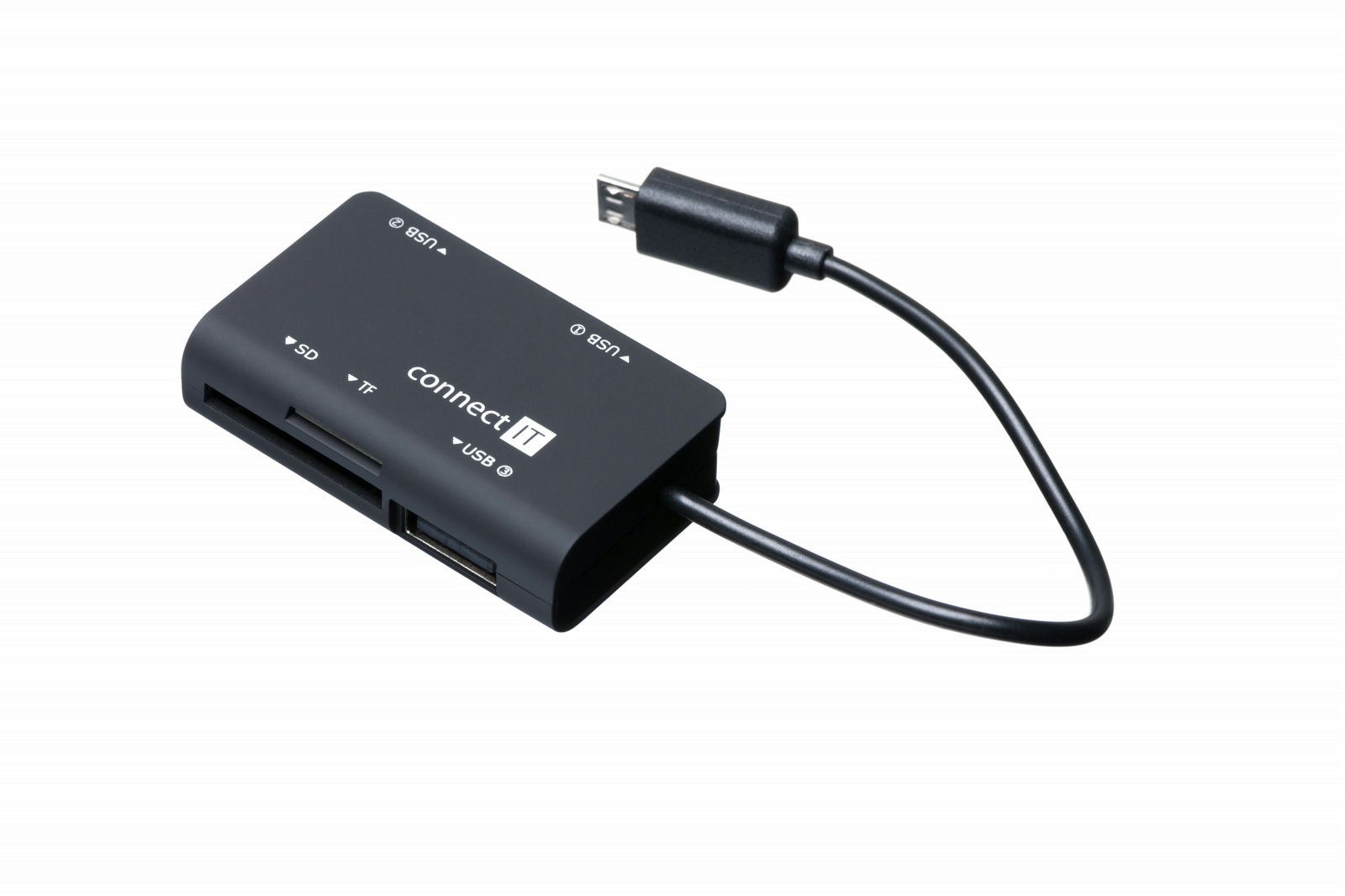 Connect IT CI-198. Hub interfaces: USB 2.0. Compatible memory cards: MicroSD (TransFlash), SD, SDHC, SDXC. Colour of product: Black