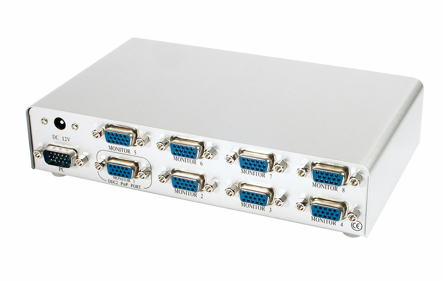 - Partageur permettant d’afficher sur 8 écrans la même source vidéo - Distance maximale entre le partageur et les écrans de 65 m - Résolution jusqu’à 2048 x 1536 / 450 MHz - Alimentation externe fournie.