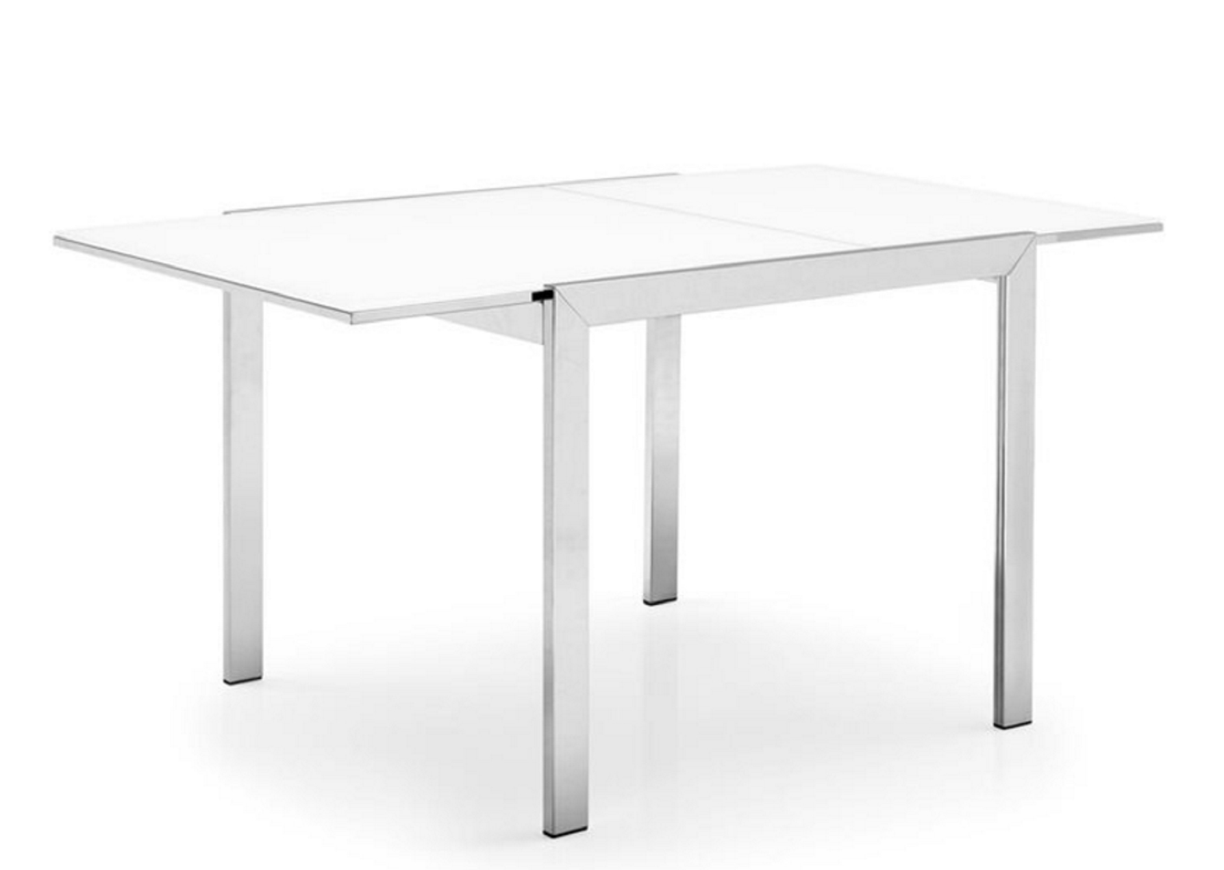 KEY is an extending table with a glass top, square shape, and metal frame. Perfect for the kitchen or small apartment.