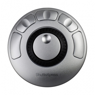 A fraction of the size, the ShuttleXpress is still loaded with all the features that made its big brother such a success. Five oversized buttons line the front side of the Xpress, each pre-programmed to work with many of the most popular audio and video editing applications on the market. Atop the Shuttle sits a fully rotating jog knob positioned precisely in the center of a spring-loaded rubberized Shuttle wheel, each awaiting but a twist to assist with your projects. And backing it all is Contour's Shuttle software, constantly updated to maintain compatibility with the most current releases of applications and operating systems. So no matter where your Shuttle lands for work, you'll be ready, willing, and more than able.