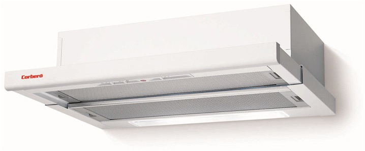 Corbero CCT60W. Maximum extraction power: 340 m³/h, Type of extraction: Ducted, Noise level: 66 dB. Type: Built-under cooker hood, Colour of product: White, Lamps quantity: 2 lamp(s). Grease filter type: Metal. Motor power: 340 W, AC input voltage: 220-240 V, AC input frequency: 50 Hz. Width: 600 mm