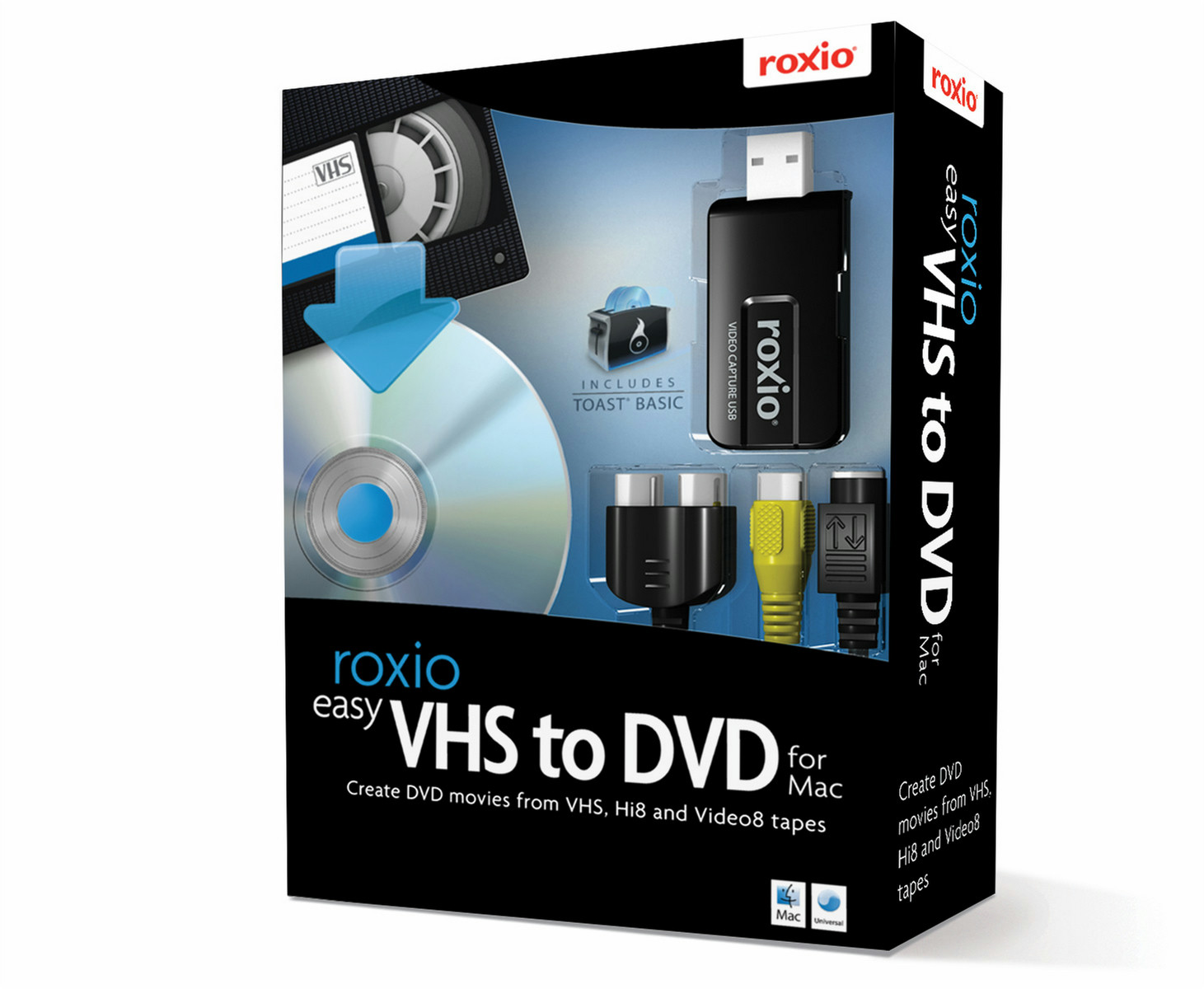 It’s a sad fact that VHS, Hi8 and Video8 tapes will degrade over time, eventually losing their original quality. Don’t let your memories fade away! Now you can digitally preserve your precious memories for generations to come. Roxio Easy VHS to DVD for Mac makes it easy to convert analog video to digital formats for playback on DVD, on your Mac, or on portable devices like iPods and iPhones.