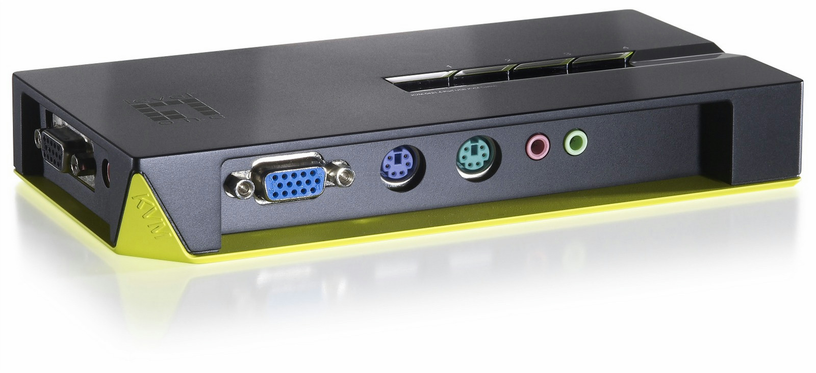 The LevelOne KVM-0411 connects four computer systems to a single PS/2 keyboard, PS/2 mouse and monitor. The 2-Port PS/2 KVM Switch also provides audio support allowing users to connect the audio ports of each computer to the KVM switch.