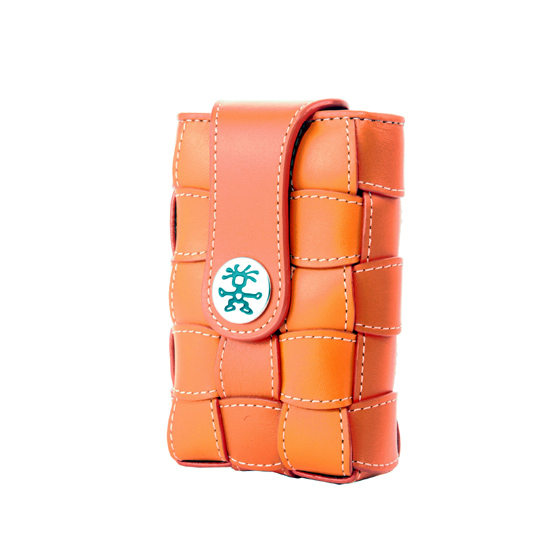 Woven leather pouch made of very fine real nappa leather; high quality craftmanship; contrast stitching; closing flap secures with a snap button; belt loop; lined with super-soft Slippertex™ microfibre for scratch protection.