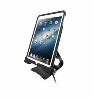 Keep the iPad Air protected and secured with CTA Digital’s Anti-Theft Security Case with Stand for iPad Air. This is an ideal security stand solution for display, point of sale or personal use. The slim but strong case is designed to fit the iPad Air or iPad Air 2 with convenient access to all ports and buttons. The iPad Air easily slides in and can be safely kept inside the protective case and locked to a secure object using the included cable lock and keys. The case can tilt 180° to easily adjust the viewing angle and rotate for horizontal or vertical views. A solid metal stand offers stability and can be secured to a desk or countertop through predrilled holes for easy installation and extra security. With the perfect design to serve as a workstation, retail display or POS iPad stand you can have convenience and security using CTA’s Anti-Theft Security Case with Stand for iPad Air.