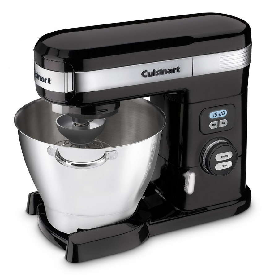 The Cuisinart® 5.5 Quart Stand Mixer has the capacity, power, and precision engineering to handle any job your recipes call for. With a Chef’s Whisk, Flat Mixing Paddle, and Dough Hook included, you can whip, mix, and knead your way through any family recipe for foolproof baking. With 12 speeds and an auto shutoff Countdown Timer, you have complete control of your mixing for perfect results. We also offer optional attachments that connect to one of three power outlets on the Stand Mixer to let you blend, process food, squeeze juices, make homemade pasta, or grind your own meats. And with a splashguard with spout, baking becomes family friendly without anybody getting messy.