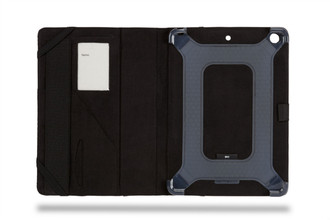 Enhance the protection and increase the functionality of the iPad Air with this leather cover. With our clean, minimalistic design, you get all the protection you need, without losing access to any buttons, jacks, or the light sensor. Serves as a low angle prop for great comfort in typing mode, or as an upright stand to sit back and watch movies and video clips. The camera cut out is perfect for taking photos and recording video.