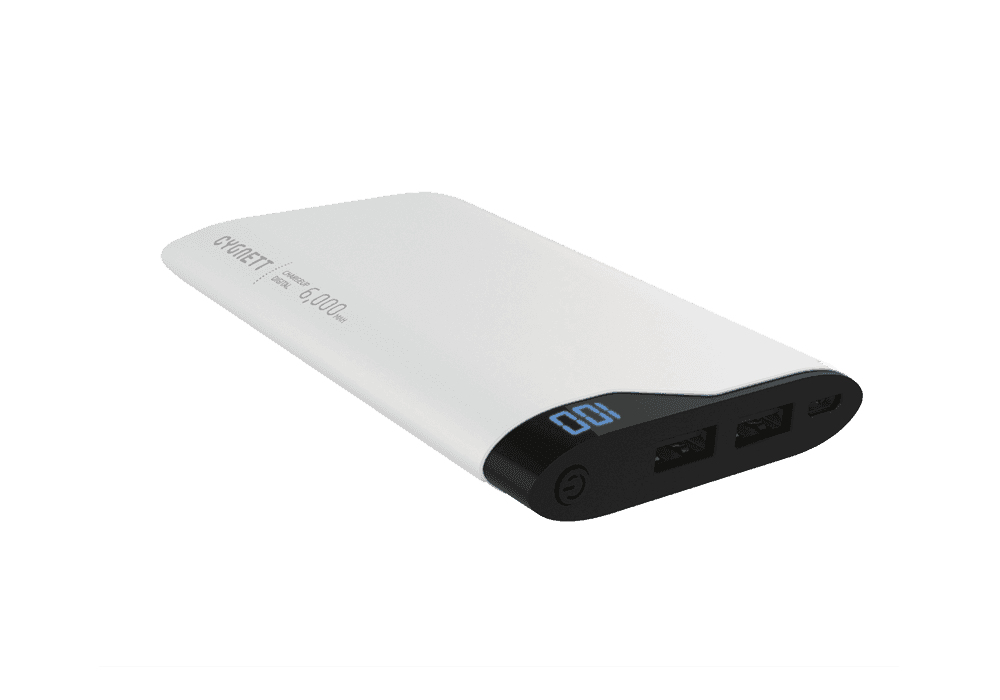 6000 mAh, 2x USB, display, 185 grams Powered by lithium polymer battery technology, allowing smaller cells to hold more charge and deliver higher power output, the ChargeUp Digital 6,000 is ultra-thin, powerful and features a digital power display with a metallic finish.